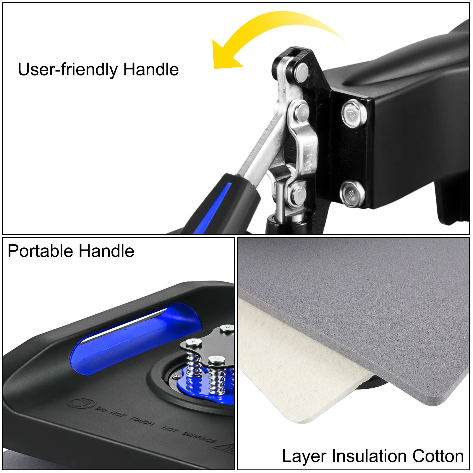 Deze 15 x 15 inch hittepers maakt gebruik van de nieuwste dubbele buisverwarmingstechnologie en tweelaagse isolatietechnologie om de overdrachtsprestaties te verbeteren. Met betrouwbare moederborden en een nauwkeurig temperatuurregelingsapparaat is de stabiliteit ook verder verbeterd. Alle benodigde accessoires worden geleverd om u de prachtige afbeeldingen op petten, T-shirts, mokken, borden, enz.