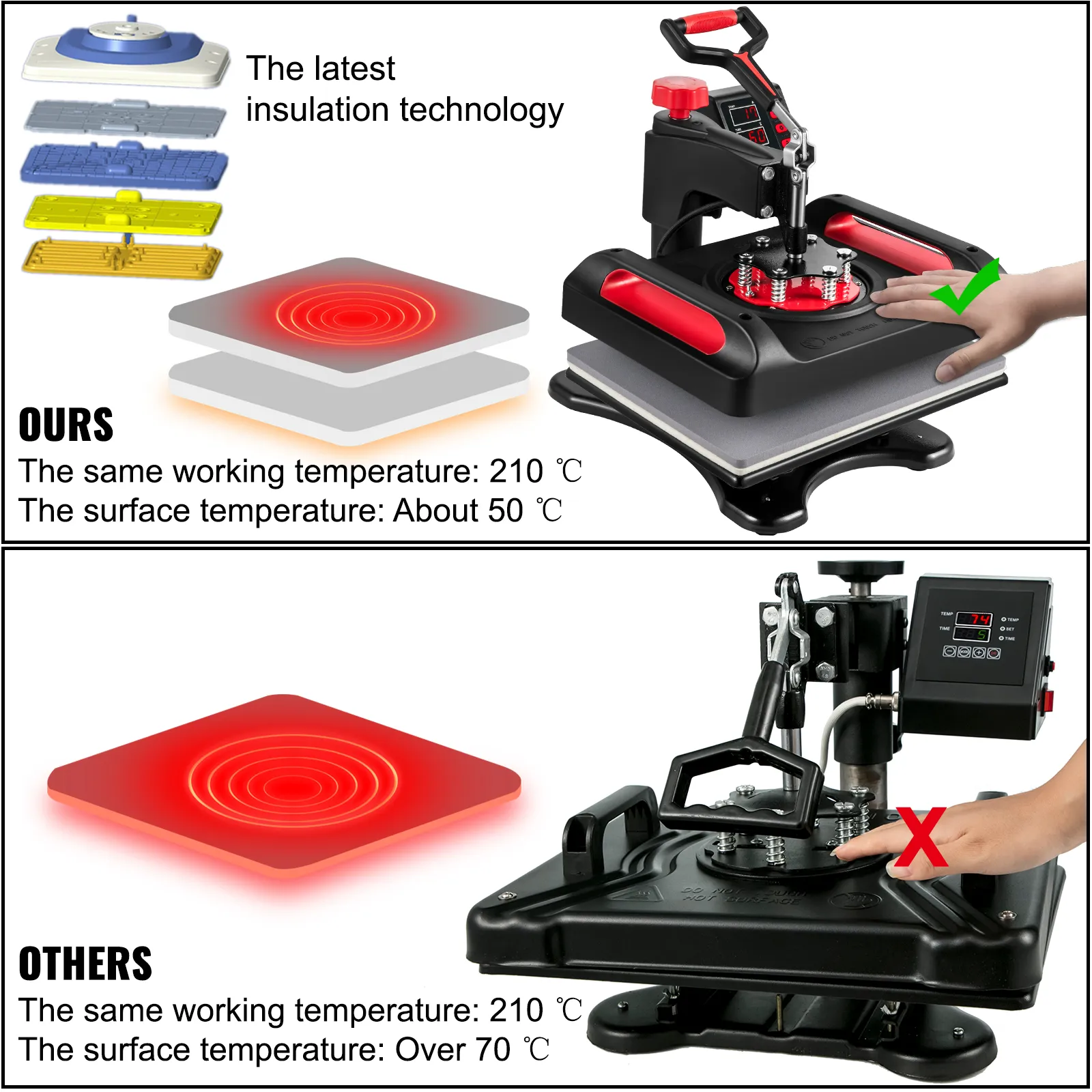 De nieuwste tweelaagse isolatietechnologie zorgt ervoor dat de oppervlaktetemperatuur van de sublimatie-hittepers slechts ongeveer 50 ℃ bedraagt wanneer de werktemperatuur 210 ℃ bereikt.