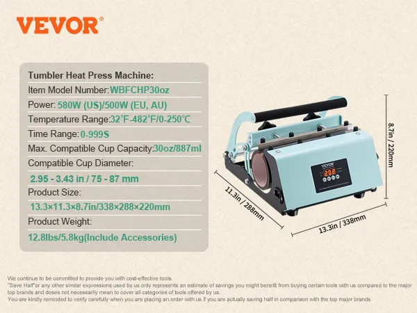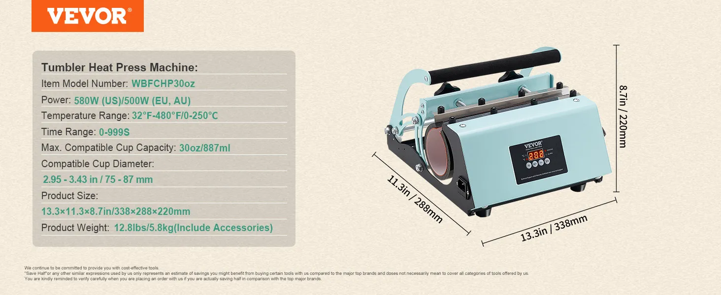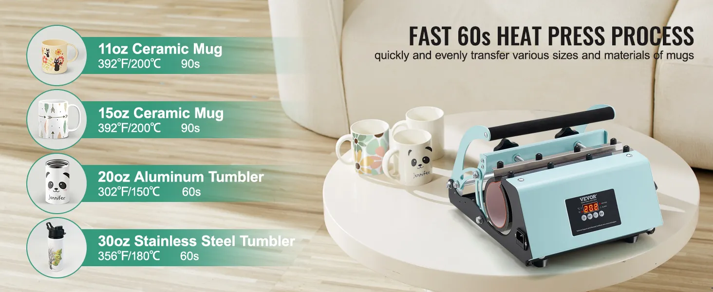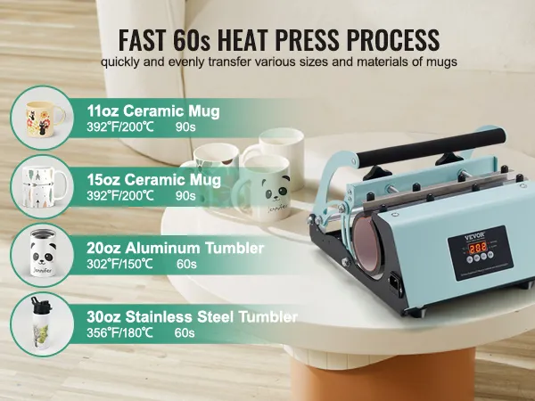 Veelzijdige toepassing: deze mok-hittepers met een capaciteit van 11 tot 30 oz (325-887 ml) is geschikt voor een verscheidenheid aan kopjesgroottes en is ideaal voor het overbrengen van ontwerpen op keramische mokken, glazen potten, roestvrijstalen flessen en verschillende bekertypes. biedt onbeperkte creatieve mogelijkheden.