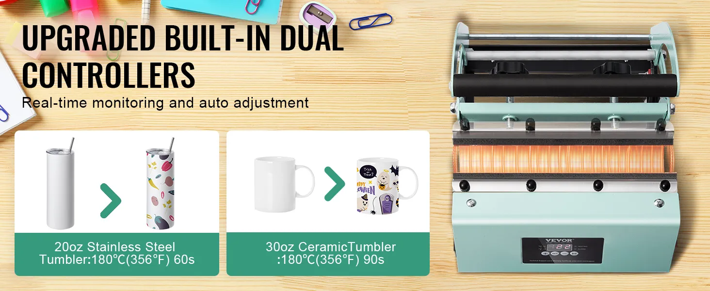 VEVOR Tumbler Heat Press, 11-30 oz Mokpers, Snelle en gelijkmatige verwarming, Tumbler Press met sublimatiepapier, tape en handschoenen, temperatuur- en tijdsinstelling, voor sublimatiemokken, kopjes, mokken, groen