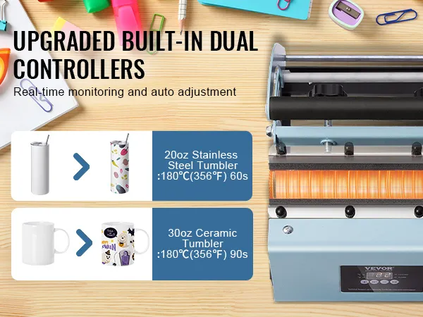 Het verbeterde dubbele controllersysteem biedt realtime monitoring en automatische aanpassing om een soepel sublimatieproces te garanderen. Aanbevolen opwarmtijden voor verschillende kopjes.