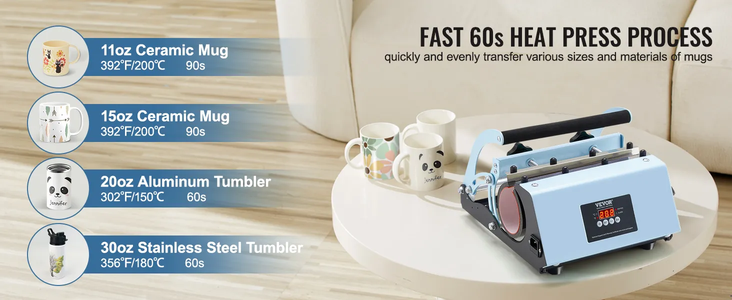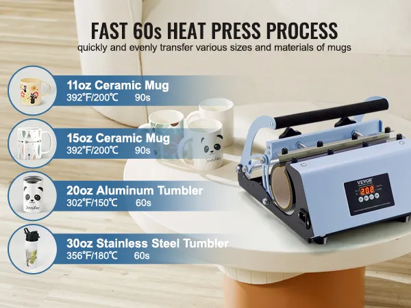Deze mok-hittepers is de perfecte keuze om je creativiteit de vrije loop te laten. Hij verwerkt gemakkelijk kopjes van verschillende groottes, van 12 tot 32 ounces, waardoor uw creatieve mogelijkheden worden uitgebreid.