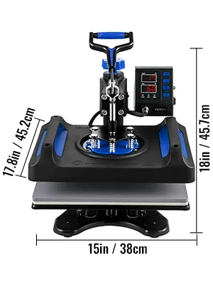 Deze t-shirtpersmachine heeft een 12 x 15 inch (29 x 38 cm) grote hitteplaat, die een groot oppervlak biedt om over te brengen op platte items. De plaat met tefloncoating is niet-klevend, waardoor de transfers niet verschroeien.