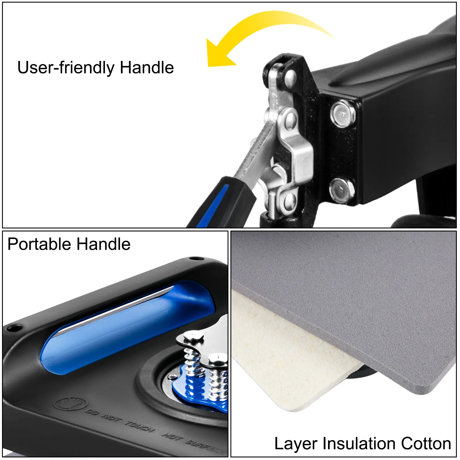 Deze hittepers van 12 x 15 inch gebruikt de nieuwste verwarmingstechnologie met dubbele buis en tweelaags isolatiekatoen om de overdrachtsprestaties te verbeteren. Met betrouwbare moederborden en een nauwkeurig temperatuurregelingsapparaat is de stabiliteit ook verder verbeterd. Alle benodigde accessoires worden geleverd om u de prachtige afbeeldingen op petten, T-shirts, mokken, borden, enz.