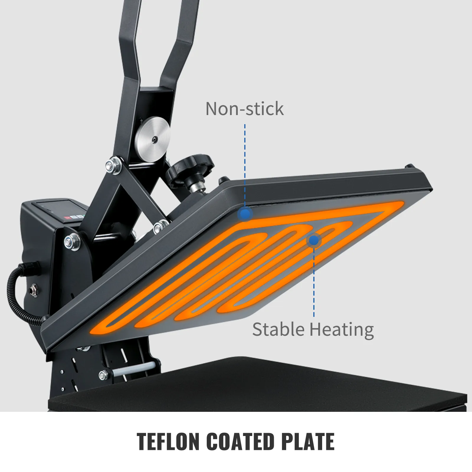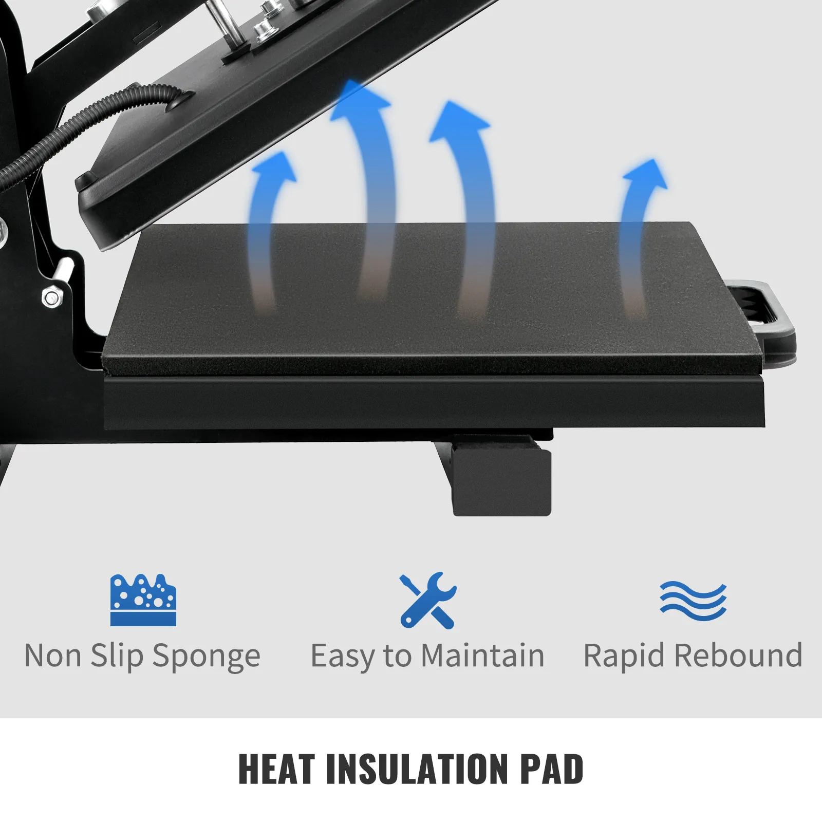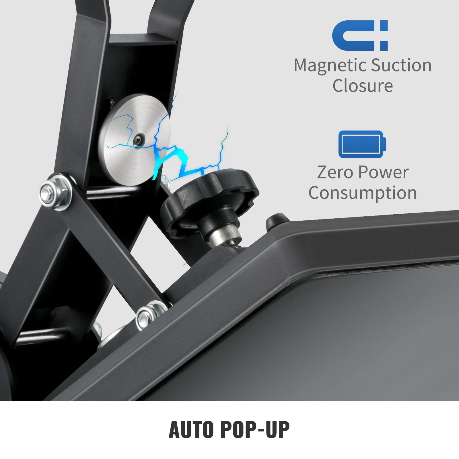 Get ready to see all your works transfer beautifully. This newly-launched magnetic auto-open heat press machine boasts all the must-have qualities. The stable U-shaped base, fast heating speed, smart control chip, scald-resistant surface, and heat insulation pad…… all these ensure excellent temperature consistency and transfer performance. All the creative ideas you have come up with can be implemented in this VEVOR machine and take your hobbies and businesses to a new level!