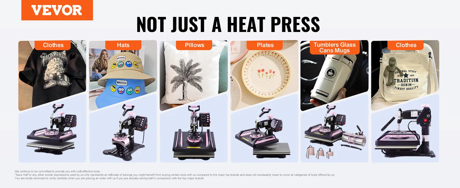 Our heat press comes with multiple attachments, allowing you to effortlessly transfer beautiful designs onto T-shirts, pillowcases, hats, mugs, and ceramic plates, unleashing unlimited creativity. Whether making personalized gifts or crafting unique DIY projects, it has you covered.
