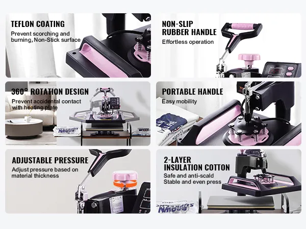 Dual Tube Heating: The shirt press uses advanced dual tube heating technology for quick heating and more even heat distribution, ensuring every inch of the press area reaches the ideal temperature. This improves the uniformity, clarity, and color fidelity of the transferred designs.