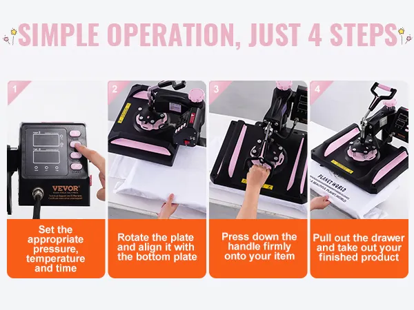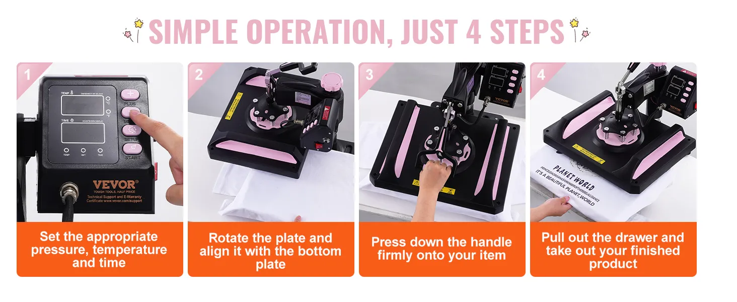 Easy Operation: Set, press, and remove – complete the transfer work in simple steps, even if you're a beginner. After the transfer is done, our heat transfer machine's unique pull-out drawer design allows you to easily remove the finished product without worrying about the risk of burns.