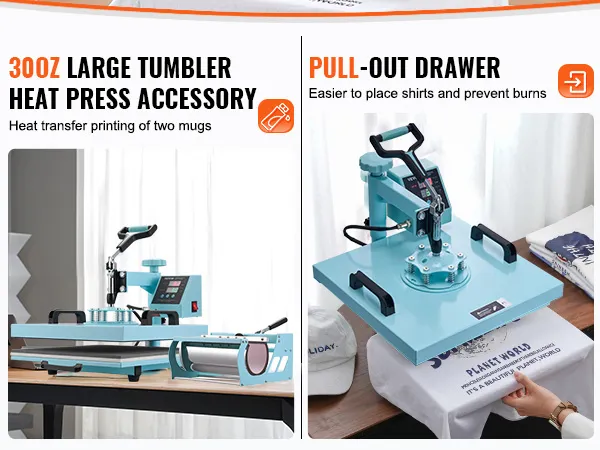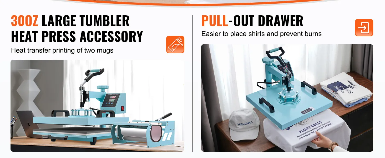 Het biedt ruimte voor twee standaardbekers en maakt uw werk efficiënter! Onze hetepersmachine heeft een uittrekbare lade om de veiligheid te vergroten en brandwonden te voorkomen bij het laden en lossen van artikelen.