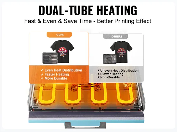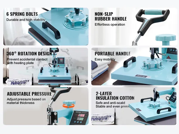 Verhoogde veiligheid tegen brandwonden: dankzij de 360° draaibare arm kunt u de verwarmingsplaat opzij duwen en de lade uittrekken bij het inbrengen of verwijderen van T-shirts. Deze veiligheidsvoorzieningen houden u uit de buurt van de verwarmingsplaat en voorkomen brandwonden. Het uitschuifbare ontwerp biedt meer ruimte voor eenvoudige en gemakkelijke bediening.