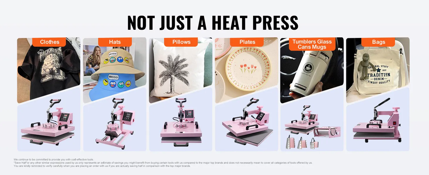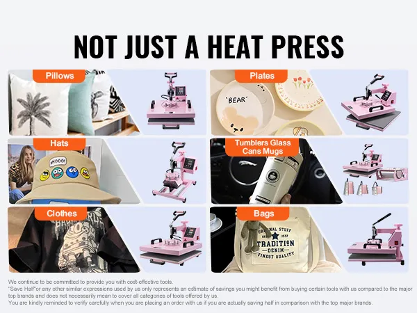 Our heat press comes with multiple attachments, allowing you to effortlessly transfer beautiful designs onto T-shirts, pillowcases, hats, mugs, and ceramic plates, unleashing unlimited creativity. Whether making personalized gifts or crafting unique DIY projects, it has you covered.