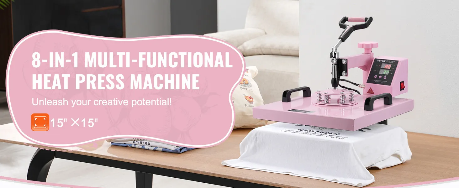 VEVOR Heat Press Machine, 15 x 15 inch, 8 in 1 Heat Transfer Machine with 6-30 oz Tumbler Press, 360° Swing Away T-Shirt Pressing, Digital Precise Control, for T-Shirts/Mugs/Hats/Plates, Pink