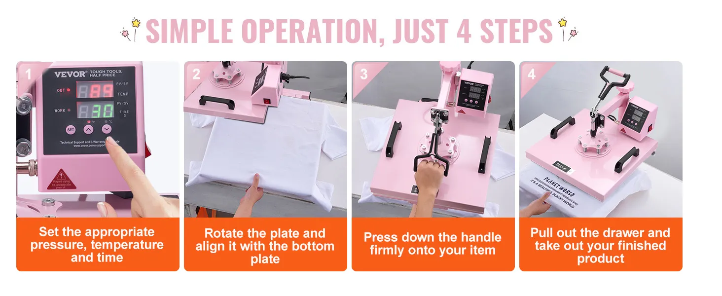 Easy Operation: Set, press, and remove – complete the transfer work in simple steps, even if you're a beginner. After the transfer is done, our heat transfer machine's unique pull-out drawer design allows you to easily remove the finished product without worrying about the risk of burns.