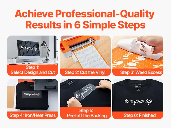 Onze vinylrol voor warmteoverdracht voor T-shirts is eenvoudig te gebruiken: ontwerp je ontwerp, knip het vinyl uit, verwijder het, plaats het op het gewenste item, breng warmte aan en verwijder de achterkant. Zelfs beginners op het gebied van warmteoverdracht bereiken hiermee eenvoudig een professioneel resultaat.