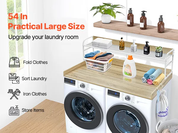 Functional Space: With a spacious surface measuring 54 inches in length and 27 inches in width, this laundry room countertop transforms your laundry room into a functional workspace. And it also comes with a storage shelf for convenient stroage of detergent and laundry basket. It offers ample room for folding, ironing, and other laundry tasks.