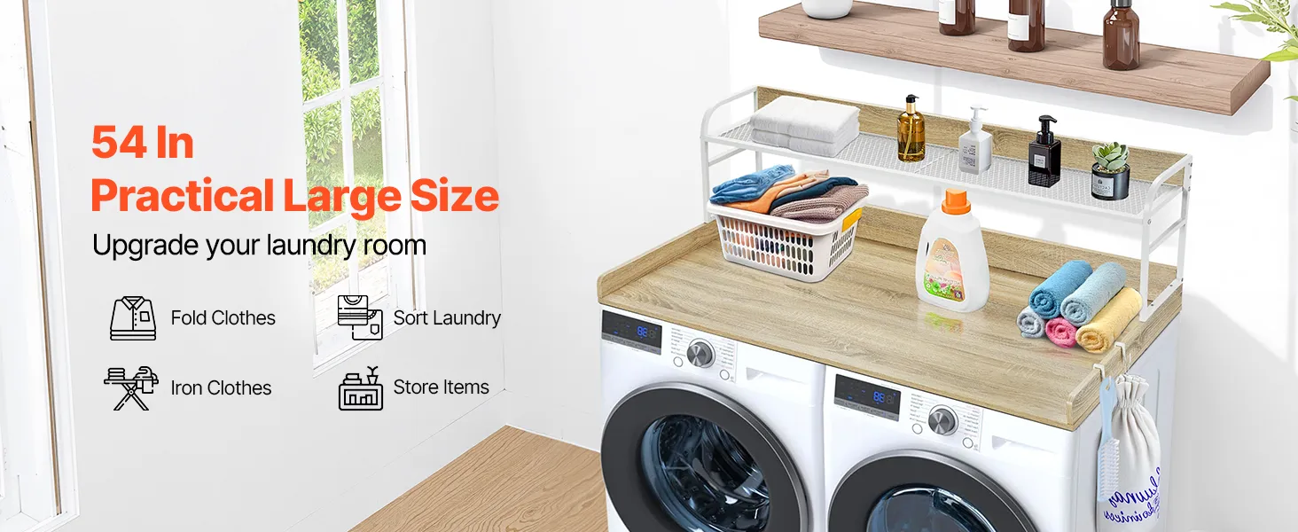 High Quality: Made from durable, friendly P2 CARB board, this washer and dryer countertop is heat-resistant, rust-resistant, water-resistant, and easy to clean. With a weight capacity of up to 250 lbs, it’s a reliable choice for your laundry room.