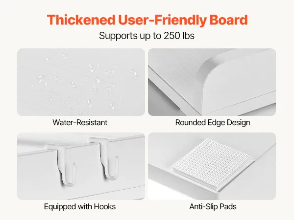 Gemaakt van hoogwaardig P2 CARB-hout met een 15 mm dik oppervlak, hitte-, water- en krasbestendig. Hij kan maximaal 113 kg dragen. Uitgerust met praktische zijhaken voor het ophangen van kleinere voorwerpen, is hij ontworpen voor dagelijks gebruik.