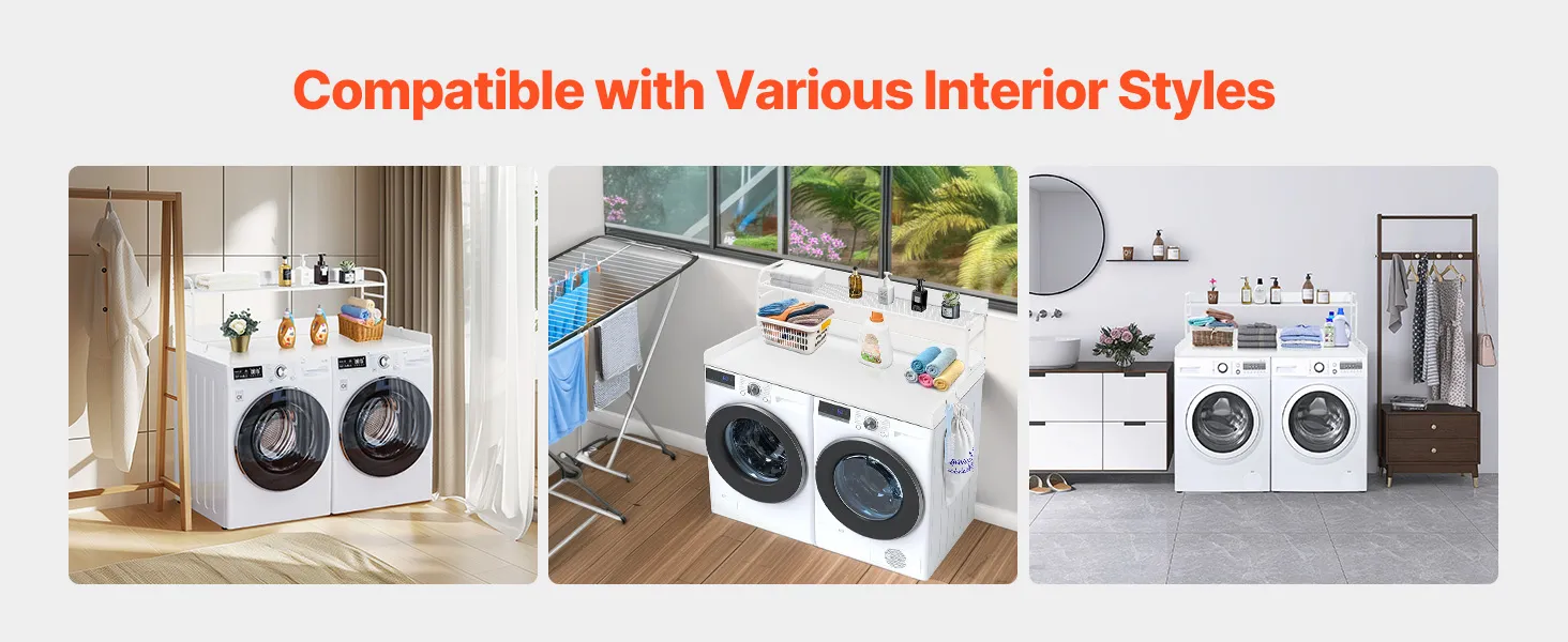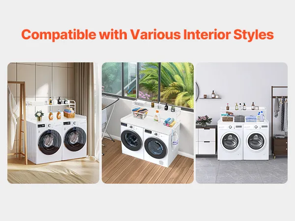 Multifunctionele haak: dit aanrecht voor de was-droogcombinatie is voorzien van zijhaken die perfect zijn voor het ophangen van alledaagse voorwerpen zoals kleding, pluizenrollers en meer. Gemakkelijke toegang en houdt alles georganiseerd en zorgt voor een schoon en opgeruimd uiterlijk.