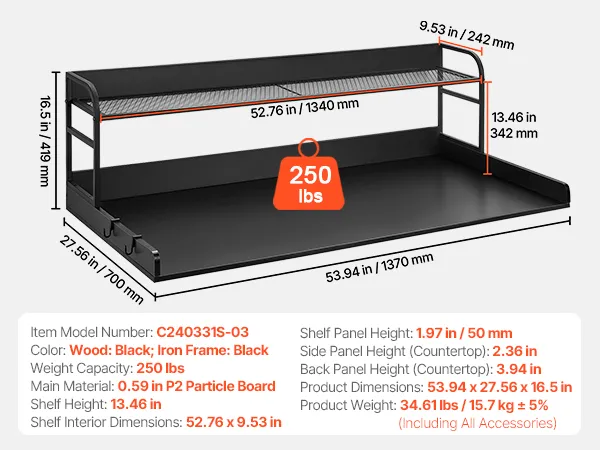 VEVOR Washer Dryer Countertop with 2-Tier Shelf, 54" x 27" Wooden Washer and Dryer Countertop with Anti-Slip Pads, Water-Resistant Laundry Topper Cover for Laundry Room Organization and Storage, Black