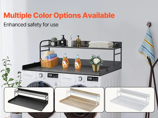 Available in black, white, and oak finishes, this washer dryer counter top complements various washer and dryer models and seamlessly blends with your home decor, creating a visually harmonious space.
