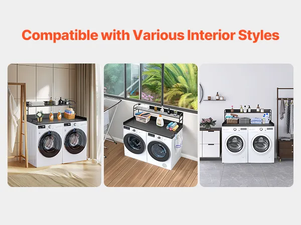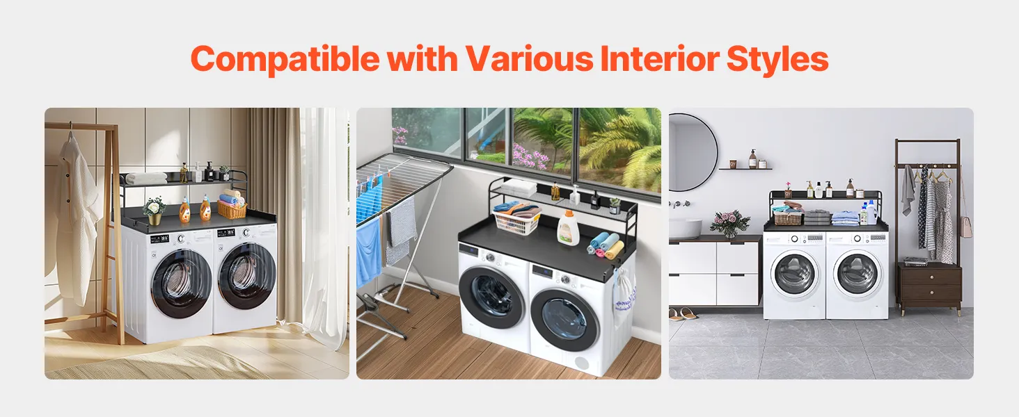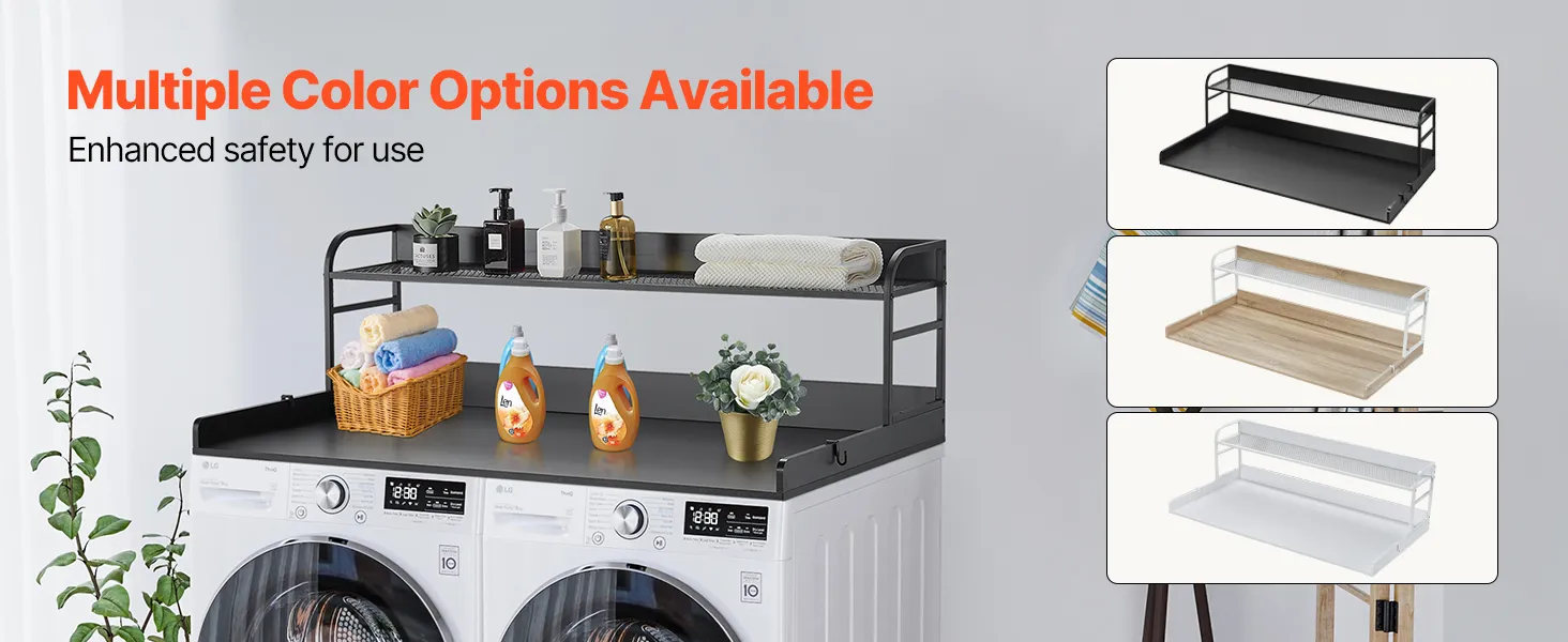 Various Styles: Black, oak and white washer dryer topper, multiple color choices make this washing machine top cover a seamless addition to any home décor. Its smooth surface, with no holes or sharp corners, combines functionality and aesthetics for a modern, harmonious look.