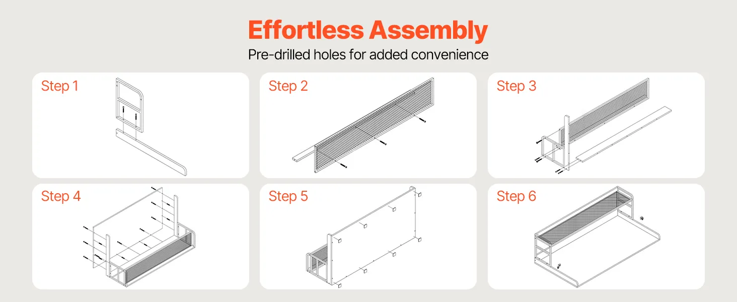 Comes with a clear and detailed manual, including all necessary tools and pre-drilled holes for simple, quick assembly—no drilling needed.