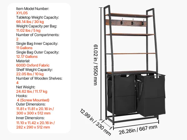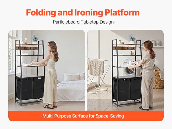 Multifunctioneel ontwerp: De bovenkant van de wassorteerder is gemaakt van 12 mm dik spaanplaat en heeft een draagvermogen tot 30 kg. Hij kan worden gebruikt om kleding te strijken, om kleding te beschermen tegen stof, of als opbergruimte voor wasgoed, belangrijke spullen of sleutels.