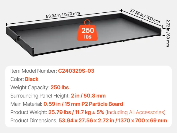 53,97 x 27,56 x 2,72 inch / 1370 x 700 x 69 mm
