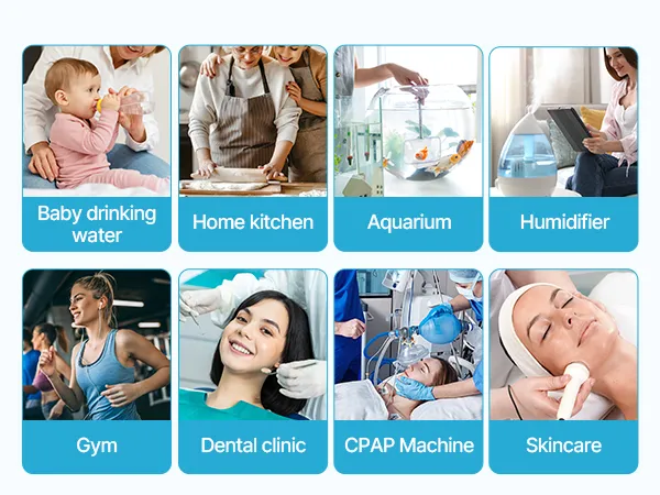 Breed scala aan toepassingen: De waterdestilleerder verwijdert de meeste onzuiverheden uit kraanwater, waardoor het geschikt is voor kantoren, woningen, laboratoria, ziekenhuizen en tandartspraktijken. Het kan worden gebruikt als drinkwater, voor het zetten van koffie en meer.