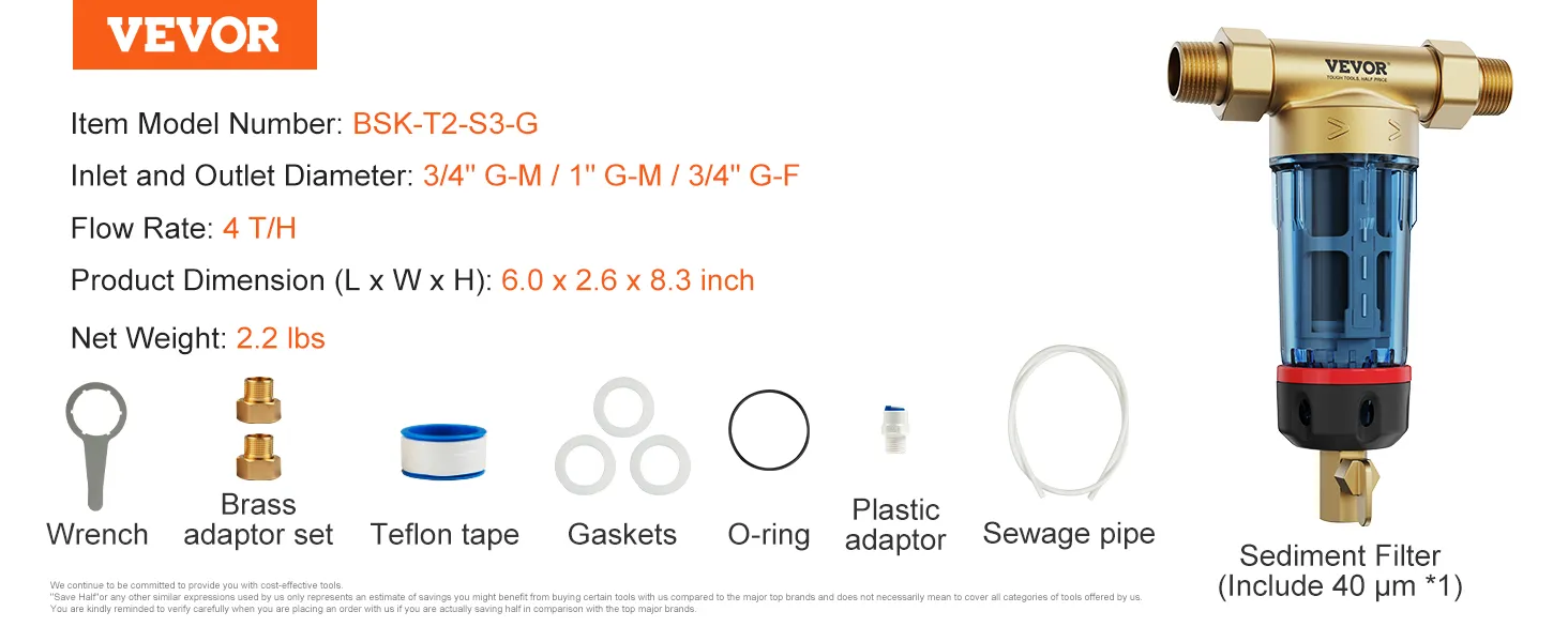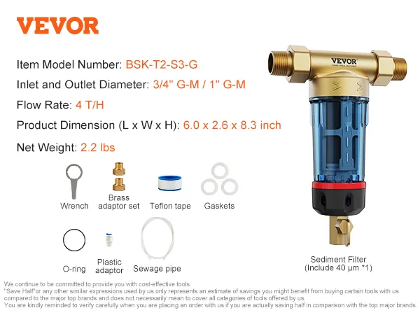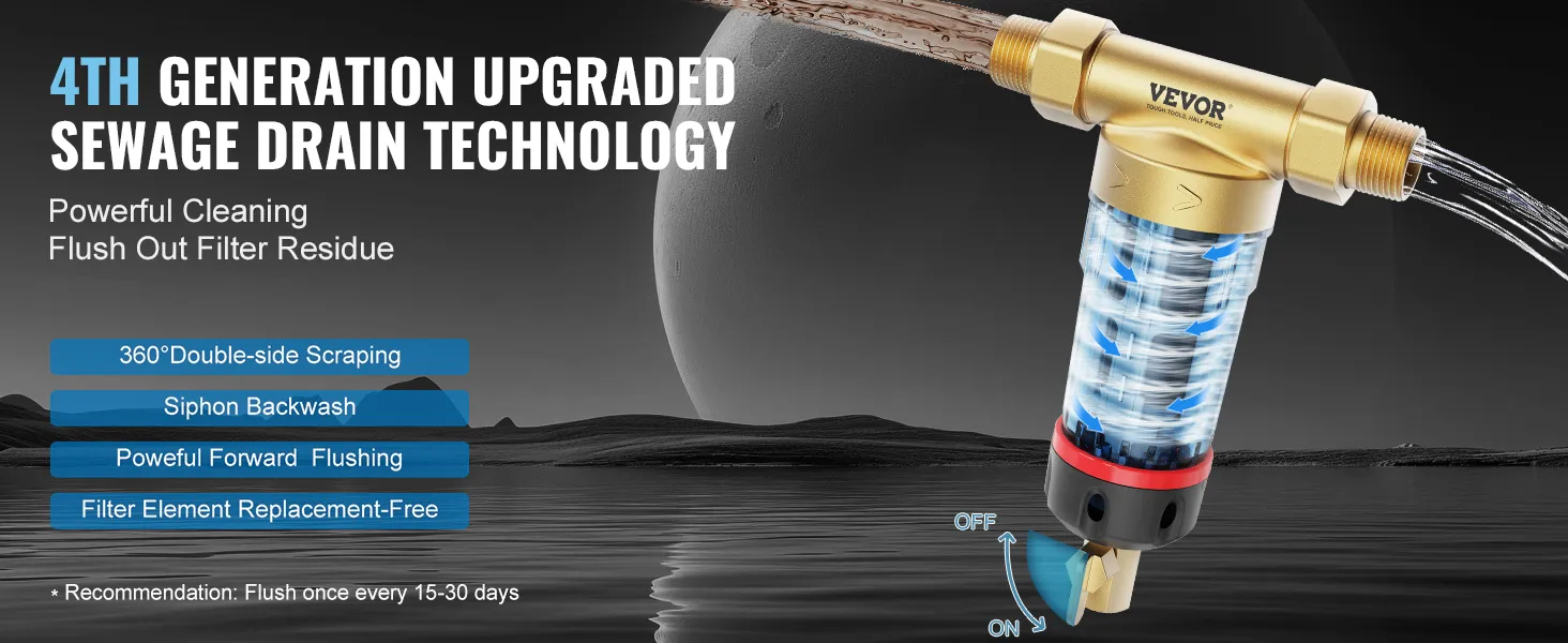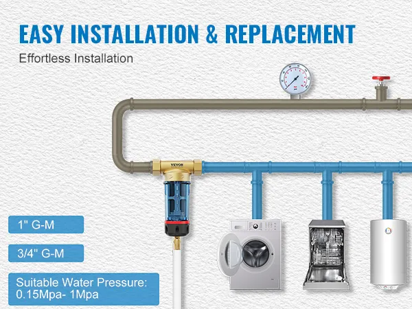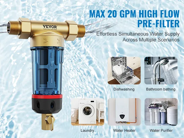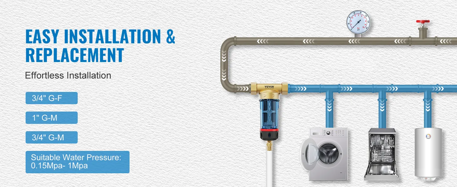 Het voorfilter is de eerste verdedigingslinie van het watersysteem in huis en VEVOR zet zich in voor het verbeteren van de waterkwaliteit bij de bron om de levensduur van huishoudelijke apparaten stroomafwaarts te verlengen.