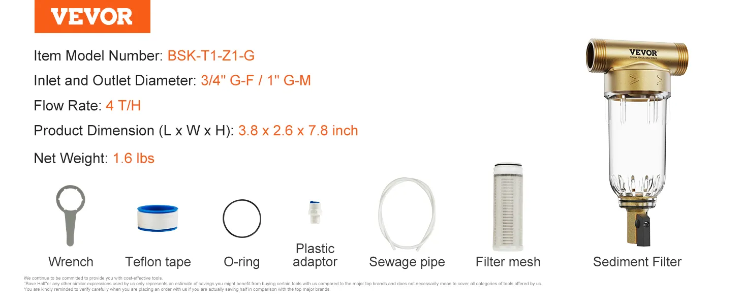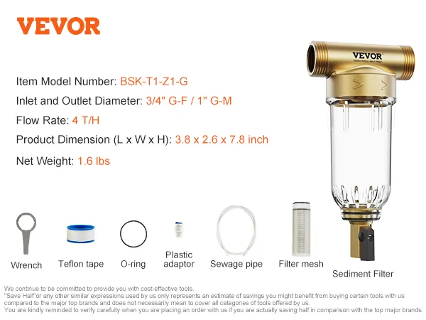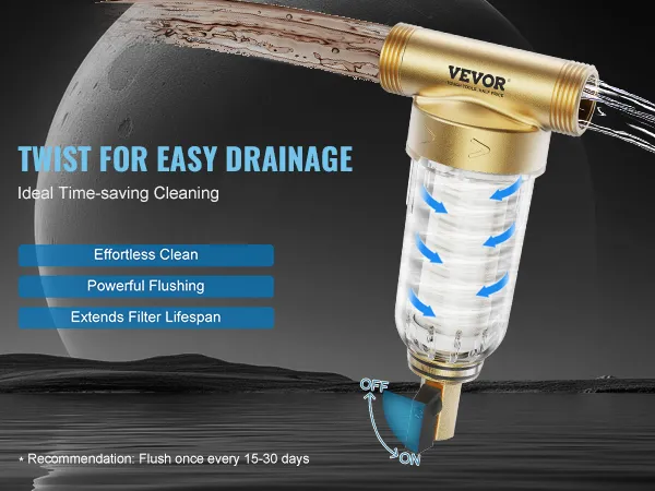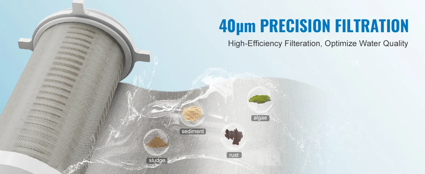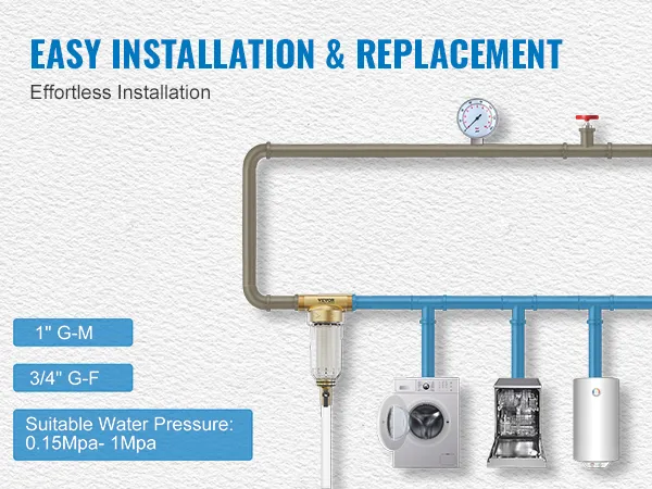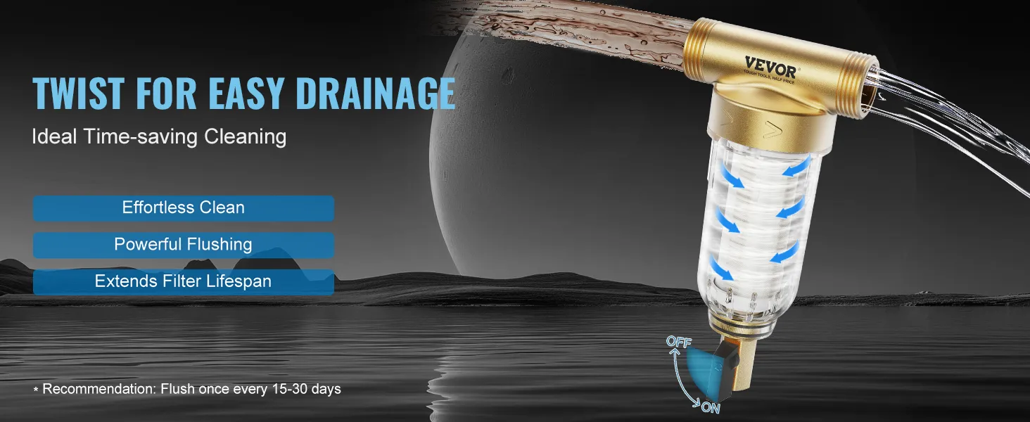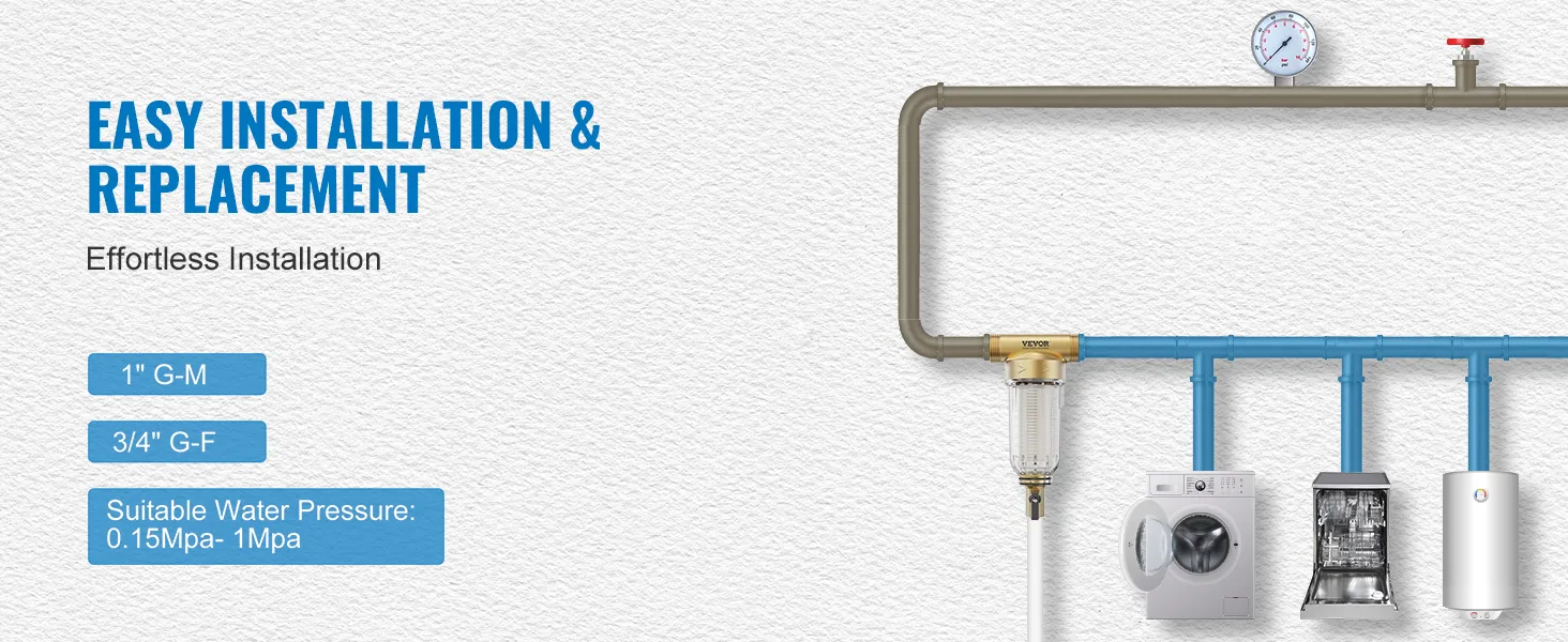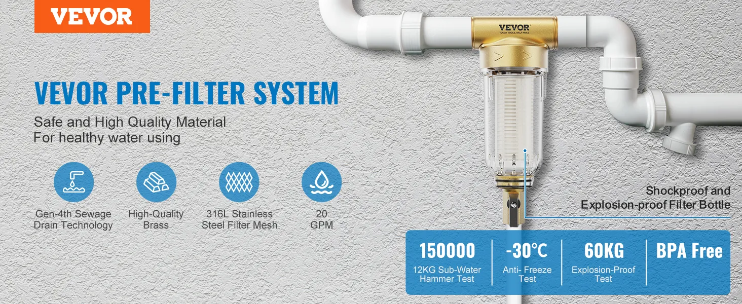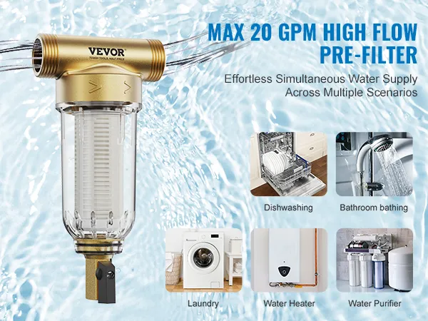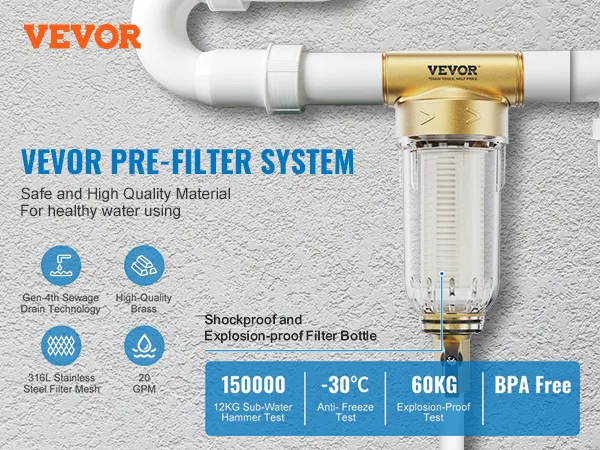 Het voorfilter is de eerste verdedigingslinie van het watersysteem in huis en VEVOR zet zich in voor het verbeteren van de waterkwaliteit bij de bron om de levensduur van huishoudelijke apparaten stroomafwaarts te verlengen.