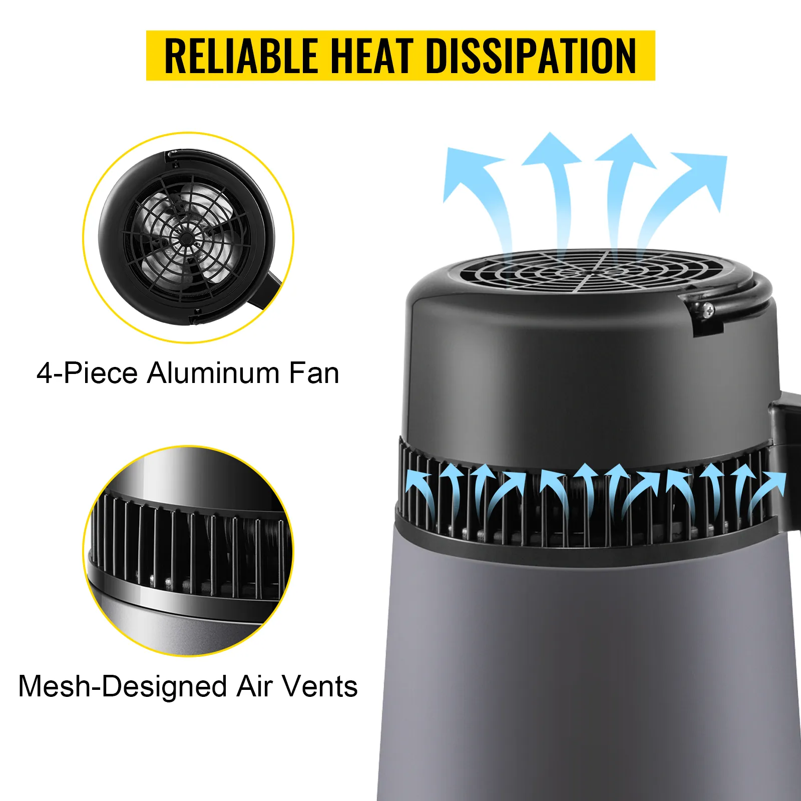 Fueled by the 750-watt aluminum heating plate, the distillation speed of our water distiller is around 1 L (0.26 Gal) per hour, with which you don't need to buy bottled water anymore.