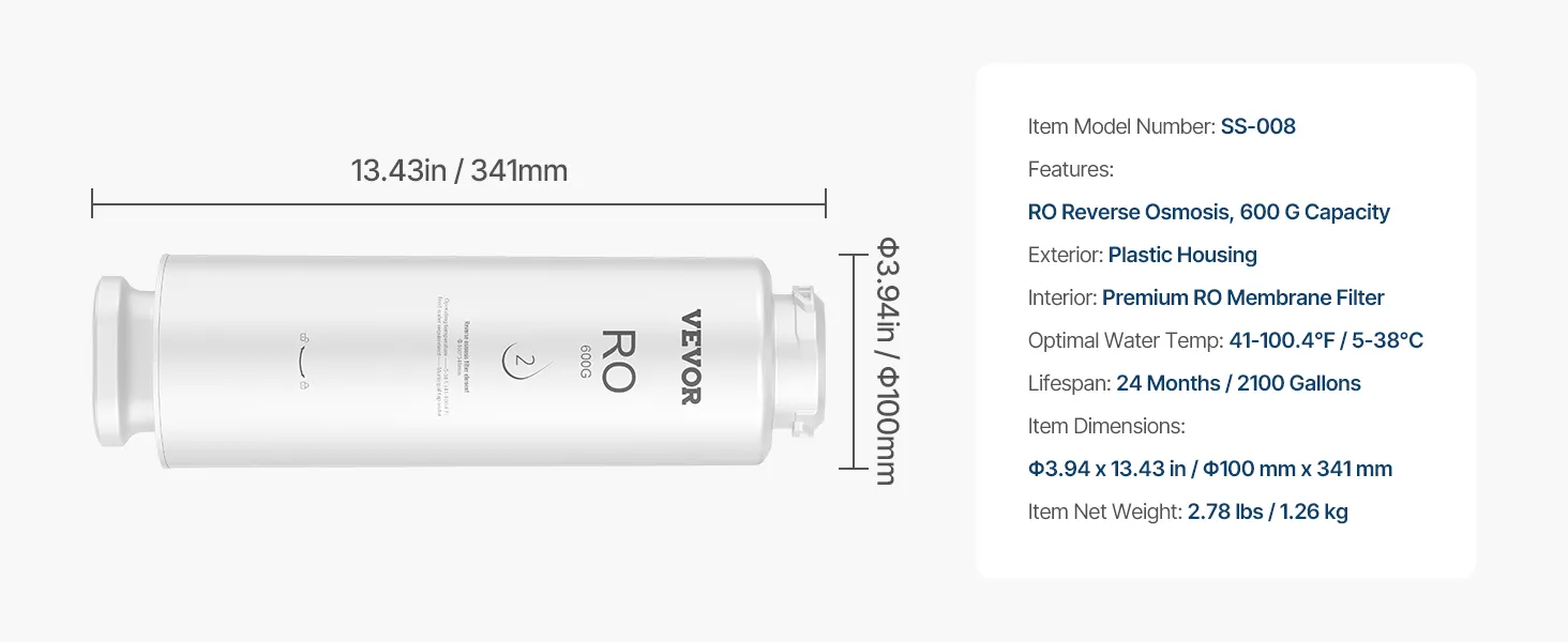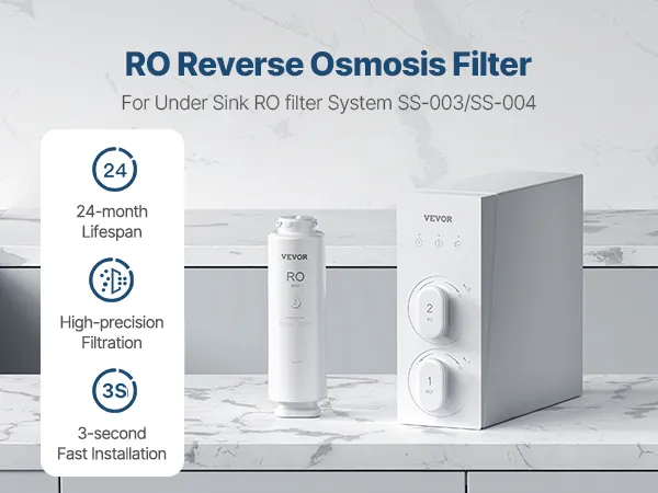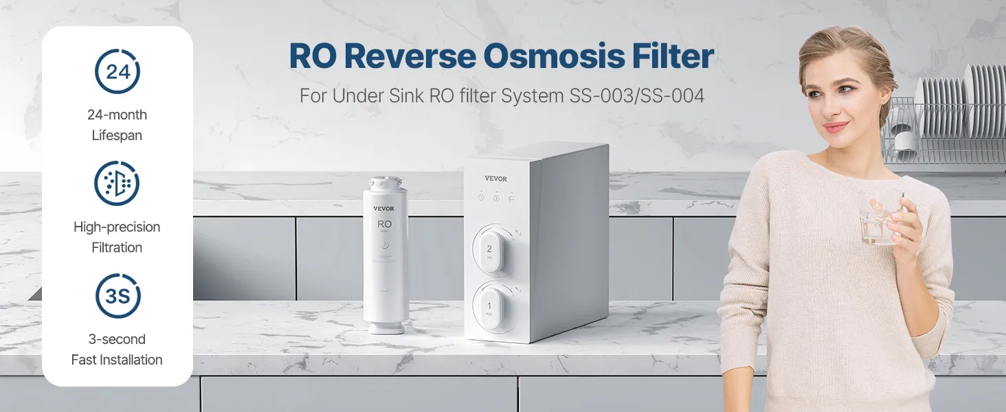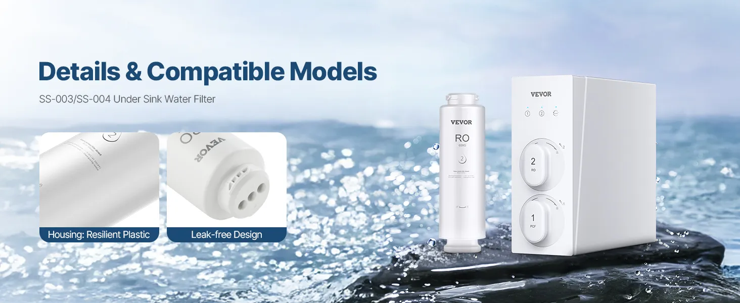 Compatible Model: Especially suitable for the SS-004 under sink reverse osmosis system, this filter provides high-efficiency filtration, low water waste, and real-time filter replacement reminders, giving you pure and secure water every time.