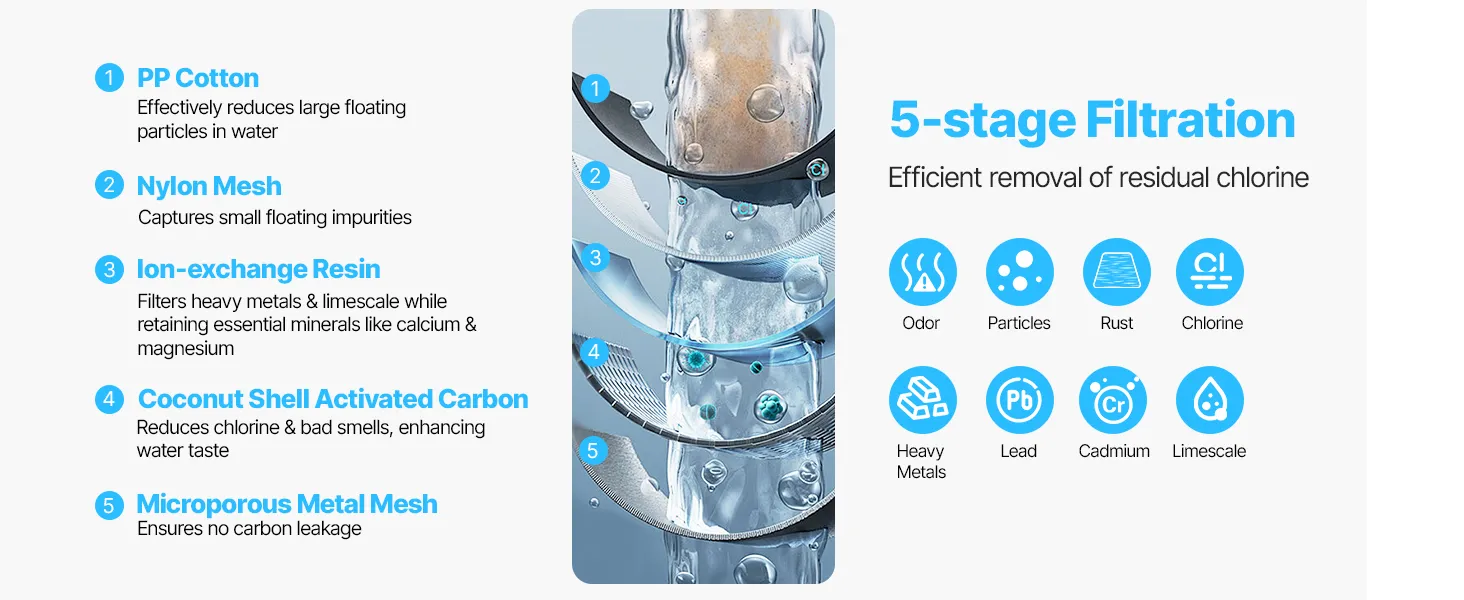 Our water filter jug efficiently gets rid of chlorine, odors, and other impurities while preserving essential minerals like calcium and magnesium to improve water taste and quality.