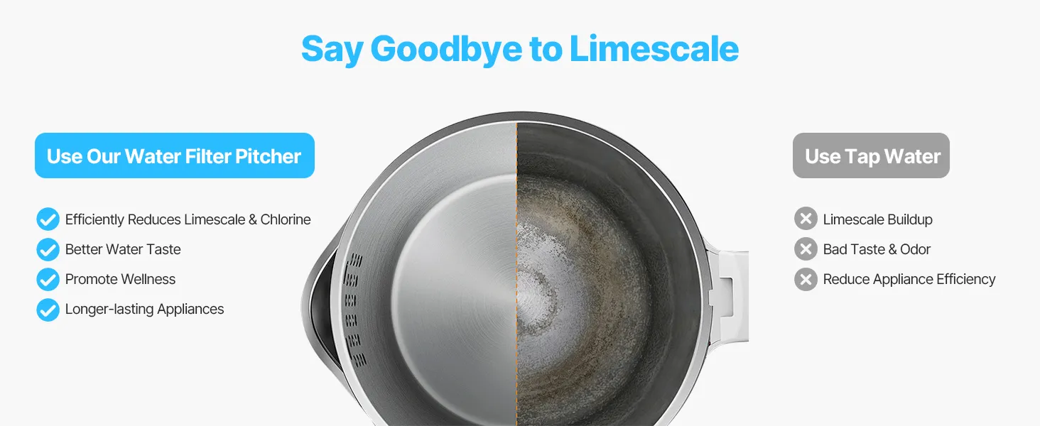 Fresh & Clean Water: Our water filter pitcher filters out impurities, heavy metals, limescale, chlorine, and odors while maintaining essential minerals like calcium and magnesium for clean, crisp water every time