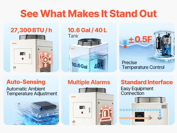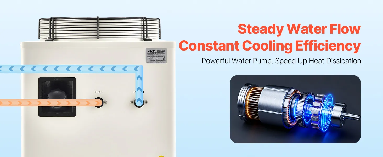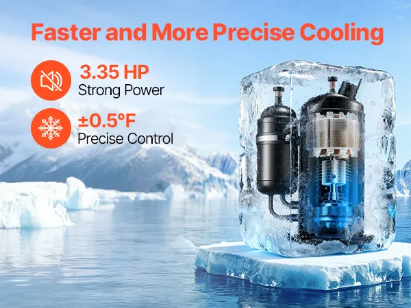 Dual Temperature Control Modes: In constant temperature mode, you can set your desired temperature, and the water chiller maintains it precisely within ±0.5°F (±0.28°C). In intelligent control mode, it automatically adjusts to the ambient temperature