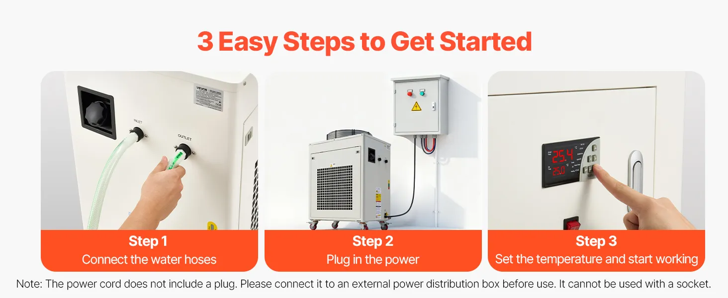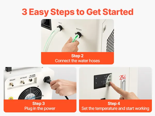 Installation Made Easy: Equipped with standard inlet and outlet sizes, this industrial water chiller is compatible with most engraving machines, laser systems, and CNC equipment. Includes an aviation connector for leak-free connection