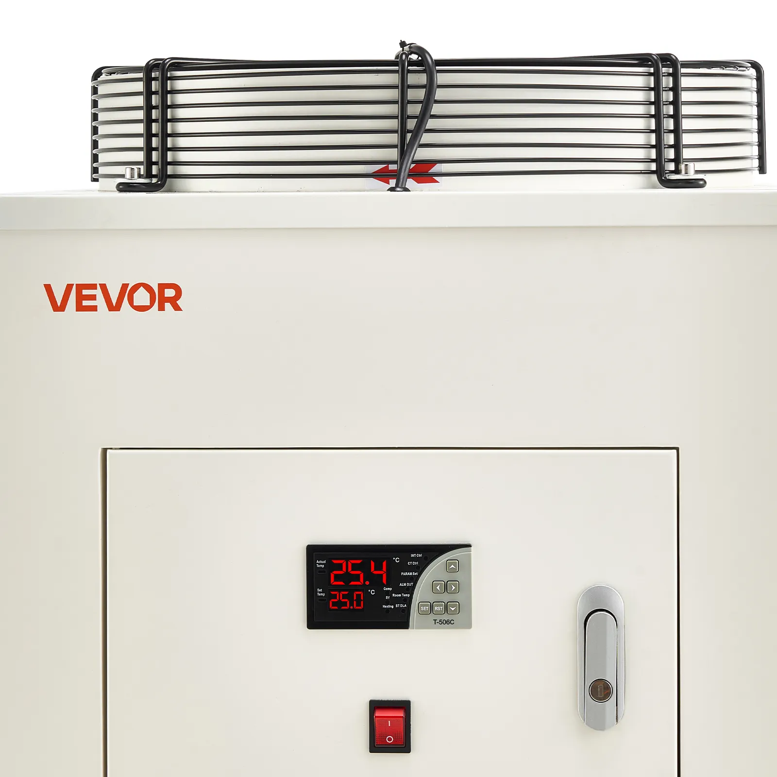 Fast Circulation, Consistent Cooling: With a 10.6 gal (40 L) tank and a maximum flow rate of 18.5 GPM (70 L/min), this industrial chiller circulates quickly to dissipate heat efficiently. The clear viewing window lets you know exactly when to refill
