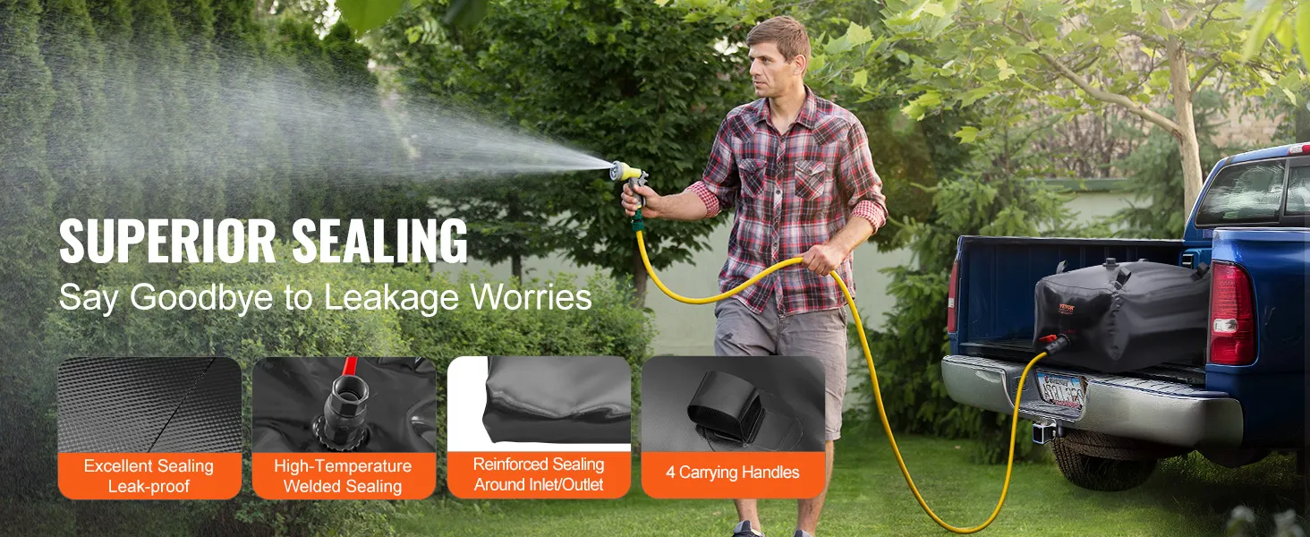 Safe and Reliable: Using high-temperature welding technology and reinforced seals around the ports, our water storage container ensures excellent sealing. No matter what type of liquid you store, you won't have to worry about leaks, offering more security for your home and outdoor activities.
