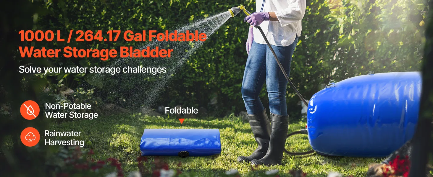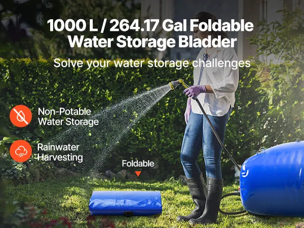 Extra grote capaciteit: Met een extra grote capaciteit van 1000 liter is deze VEVOR waterzakcontainer perfect voor thuisgebruik, lange kampeertrips, tuinirrigatie, camperopstellingen, droogtebestendigheid en noodwatervoorziening. Opvouwbaar en draagbaar, gemakkelijk overal mee naartoe te nemen.
