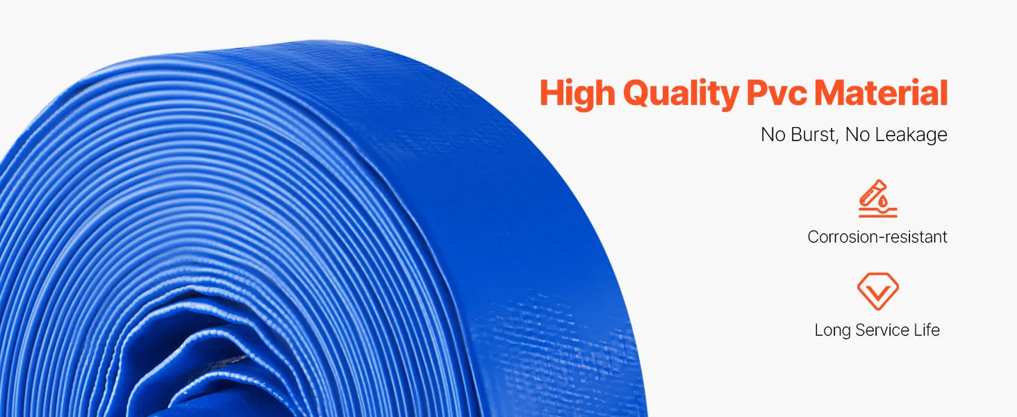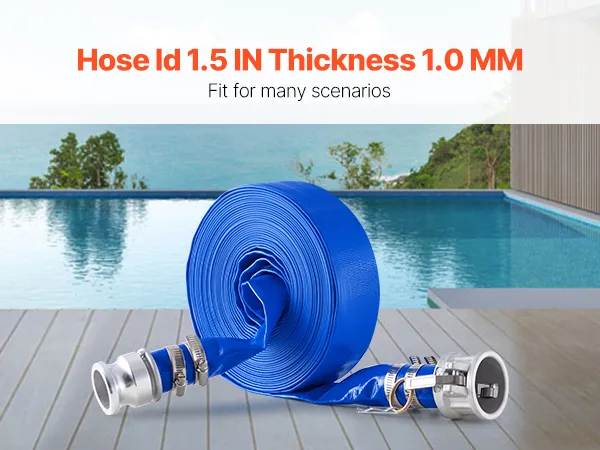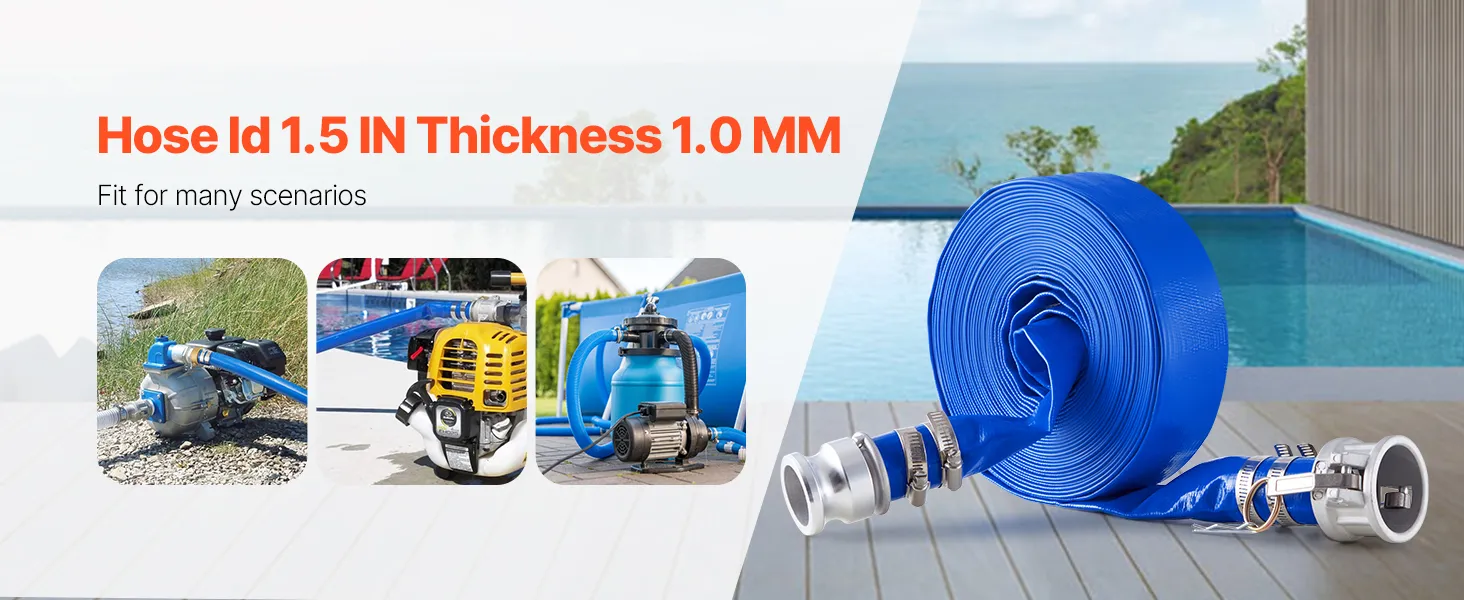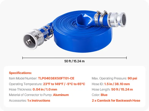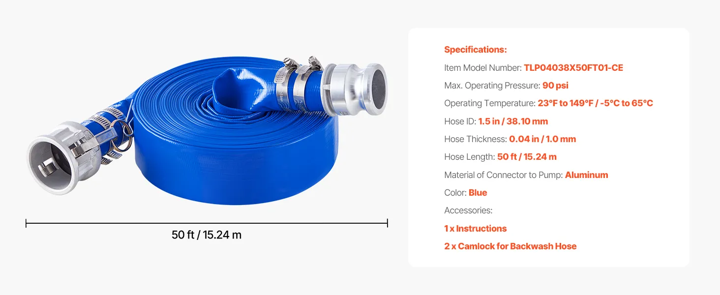 VEVOR Platte slang, 38 mm x 15 m, Afvalwaterslang, Terugspoelslang met Camlock, Aluminium koppelingen, Geschikt voor diverse pompen, voor afvalwaterbehandeling, watertransport en andere doeleinden