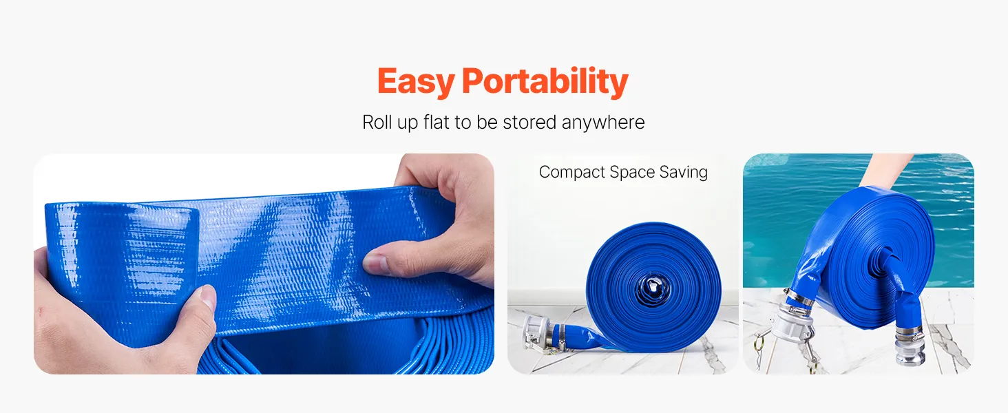 Our layered-braided 2 in x 100 ft backwash hose kit is made of flexible PVC to avoid leaks and tears, and attached clamps provide simple installation and plumbing. It can be bent, folded, and rolled up for easy storage and portability, and fits in many scenes for various pur