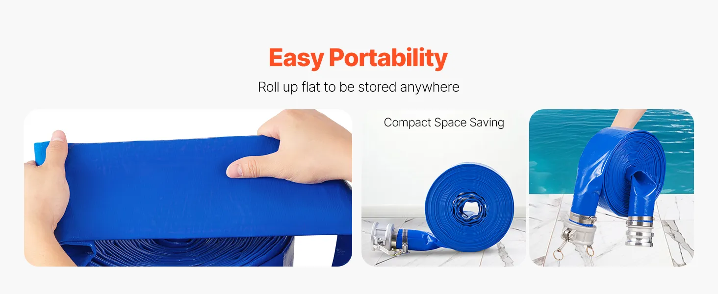 Our layered-braided 3 in x 50 ft backwash hose kit is made of flexible PVC to avoid leaks and tears, and attached clamps provide simple installation and plumbing. It can be bent, folded, and rolled up for easy storage and portability, and fits in many scenes for various purposes.