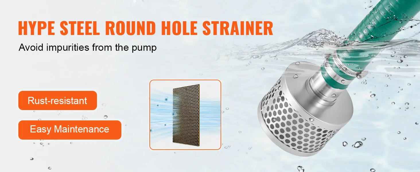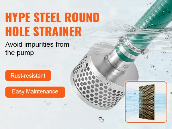 Sterk aanpassingsvermogen: het ronde stalen gatenscherm heeft een gat met een diameter van 10 mm en is gemaakt van roestvrij staal, wat roest-/corrosiebestendigheid en duurzaamheid garandeert. De zeef kan voorkomen dat onzuiverheden de pomp binnendringen, waardoor de werking van de pomp wordt beschermd.