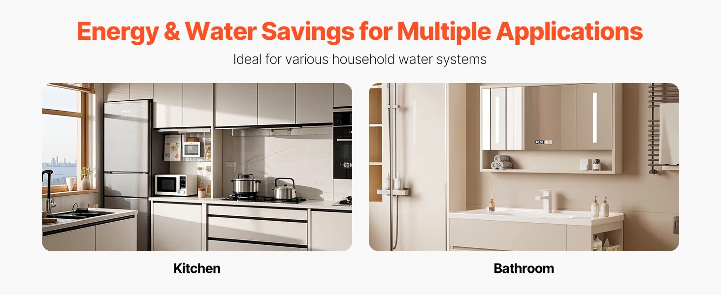 • Instant Hot Water: With a max flow of 10.0 GPM and 21.6 ft head lift, this recirculating pump kit delivers the ideal temperature to every faucet and shower in seconds. Say goodbye to wasted cold water while saving energy and water