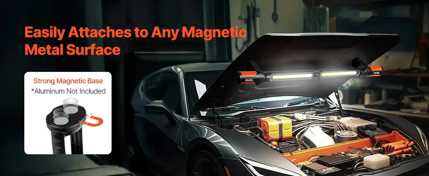 Hands-free Convenience: This mechanic light bar features a strong magnetic base, allowing it to attach to under hoods or magnetic metal surfaces (excluding aluminum). You can also hang the light from hooks, ropes, or chains above your workspace for hands-free convenience.