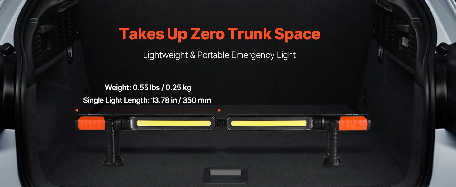 This lightweight, mechanic light bar is designed compactly, taking up minimal space in your trunk for on-the-go use. Weighing only 1.1 lbs (0.5 kg) with a length of 13.78 in (350 mm), it’s easy to store and ready to use.