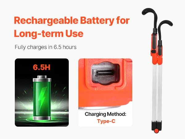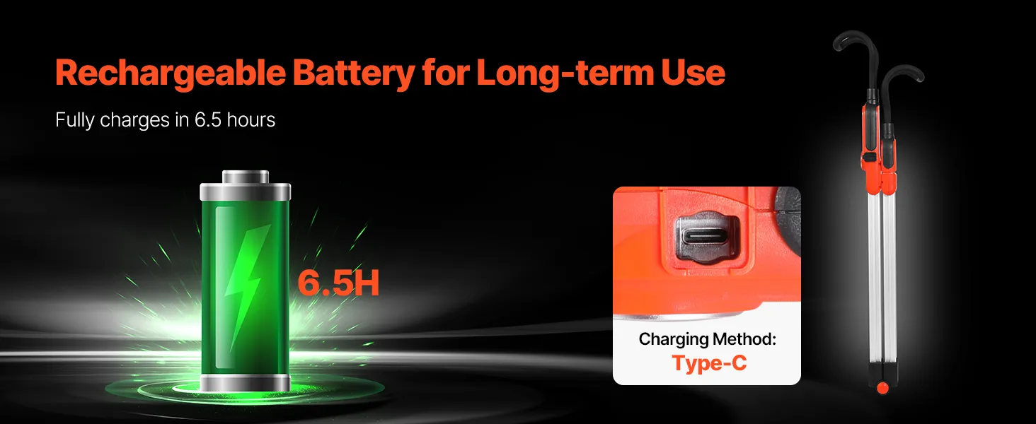 Featuring a rechargeable battery, this LED magnetic work light fully charges in just 6.5 hours to meet long usage needs. The Type-C charging interface ensures strong compatibility for easy charging anywhere.