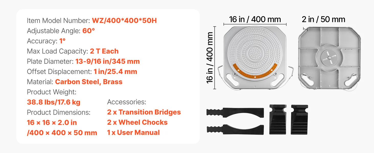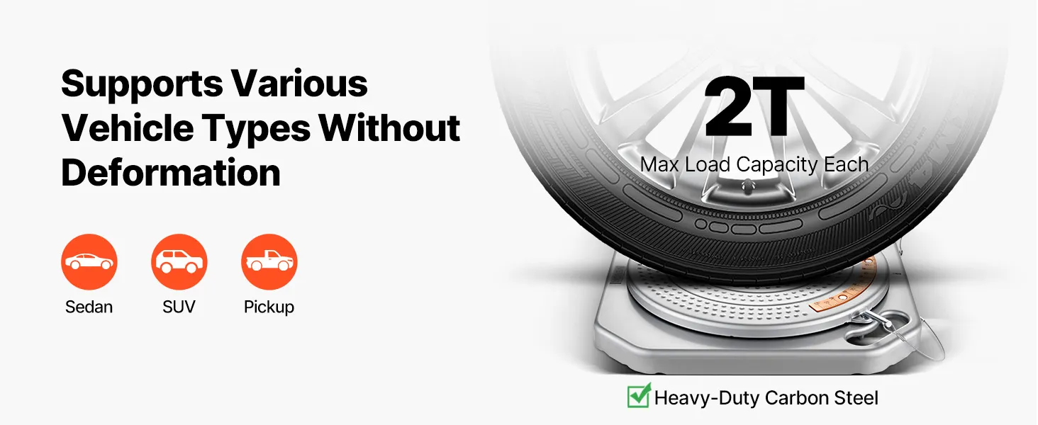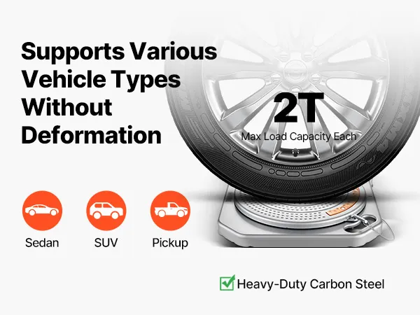 Hoge belastbaarheid: Elke wieluitlijnplaat is gemaakt van robuust koolstofstaal met een verstevigde basis en kan tot 2 ton per plaat dragen. Hij is stevig genoeg voor de meeste sedans, SUV's en lichte vrachtwagens en biedt een stabiele en veilige basis.