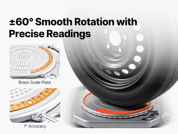 Nauwkeurige hoekschalen: Onze platen maken het mogelijk om elk wiel tot 60° te draaien voor nauwkeurige afstellingen. Een transparante messing schaal met stappen van 1° zorgt voor een nauwkeurige aflezing van stuurhoekveranderingen.